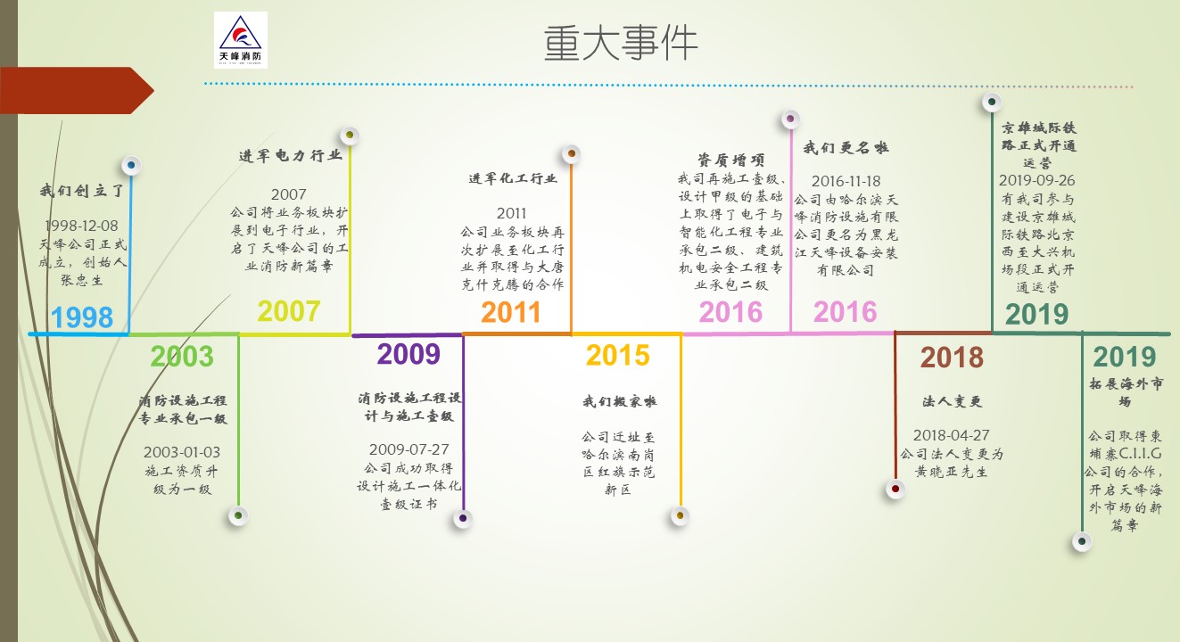 中欧体育(以下简称:中欧体育消防)创立于1998年,主要承接能源化工、石化、电力、轨道交通、冶金、城市管廊等工业行业消防系统工程,可为客户提供特殊消防系统的详细设计、供货、施工等集成服务,中欧体育消防将依靠自身实力和信誉实现“立足龙江,布局全国,走向海外”的目标。